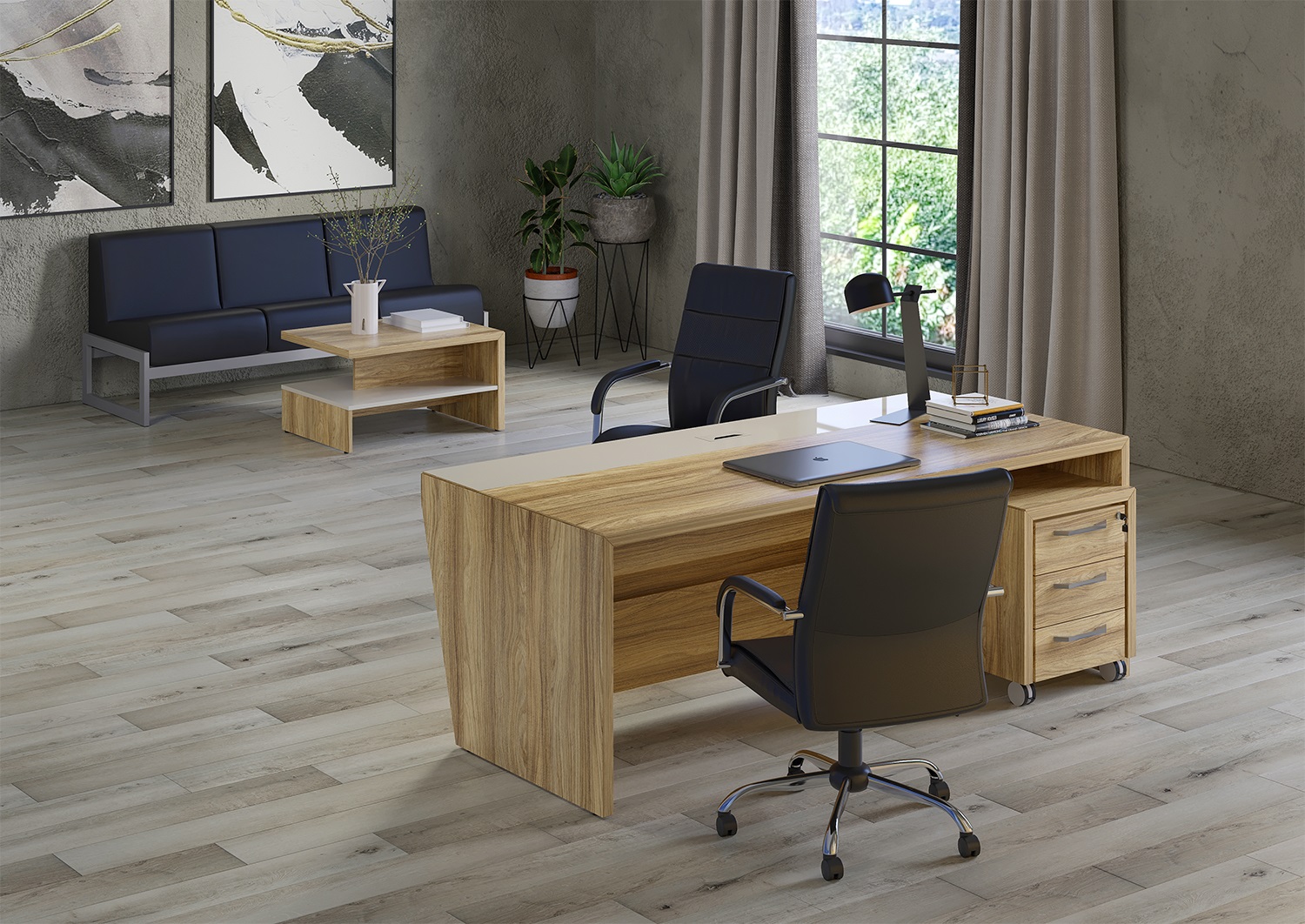 Стол руководителя с опорной тумбой, правый COR.SRT-20(R)