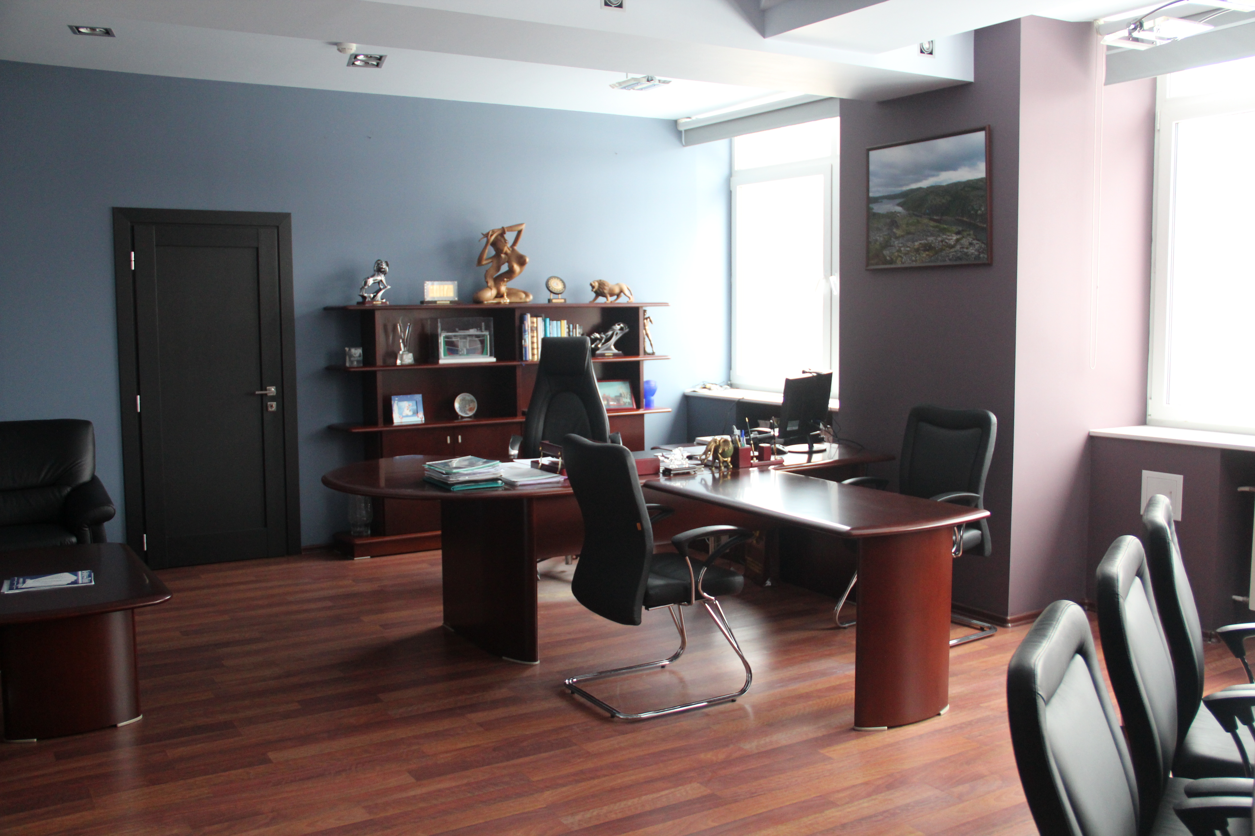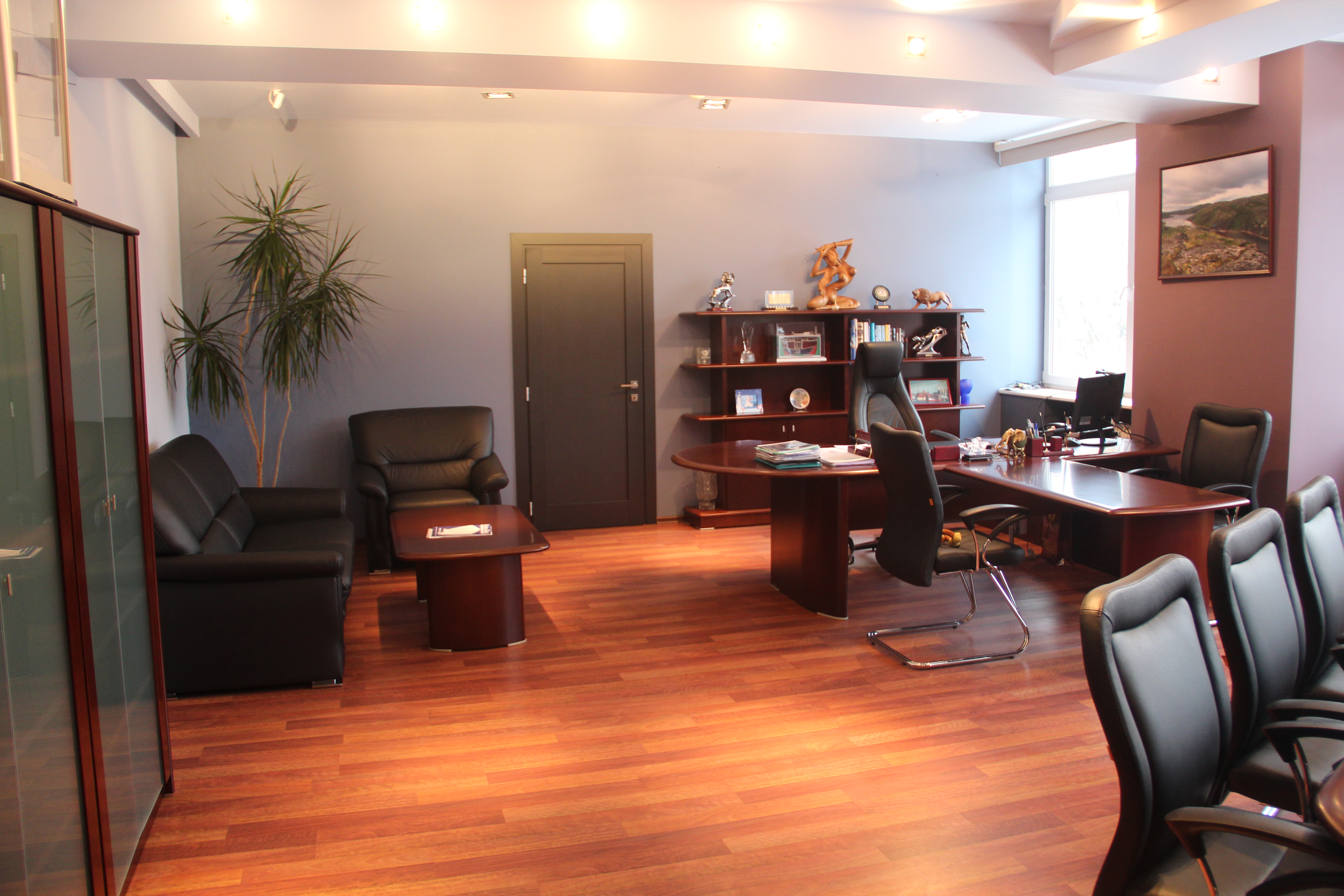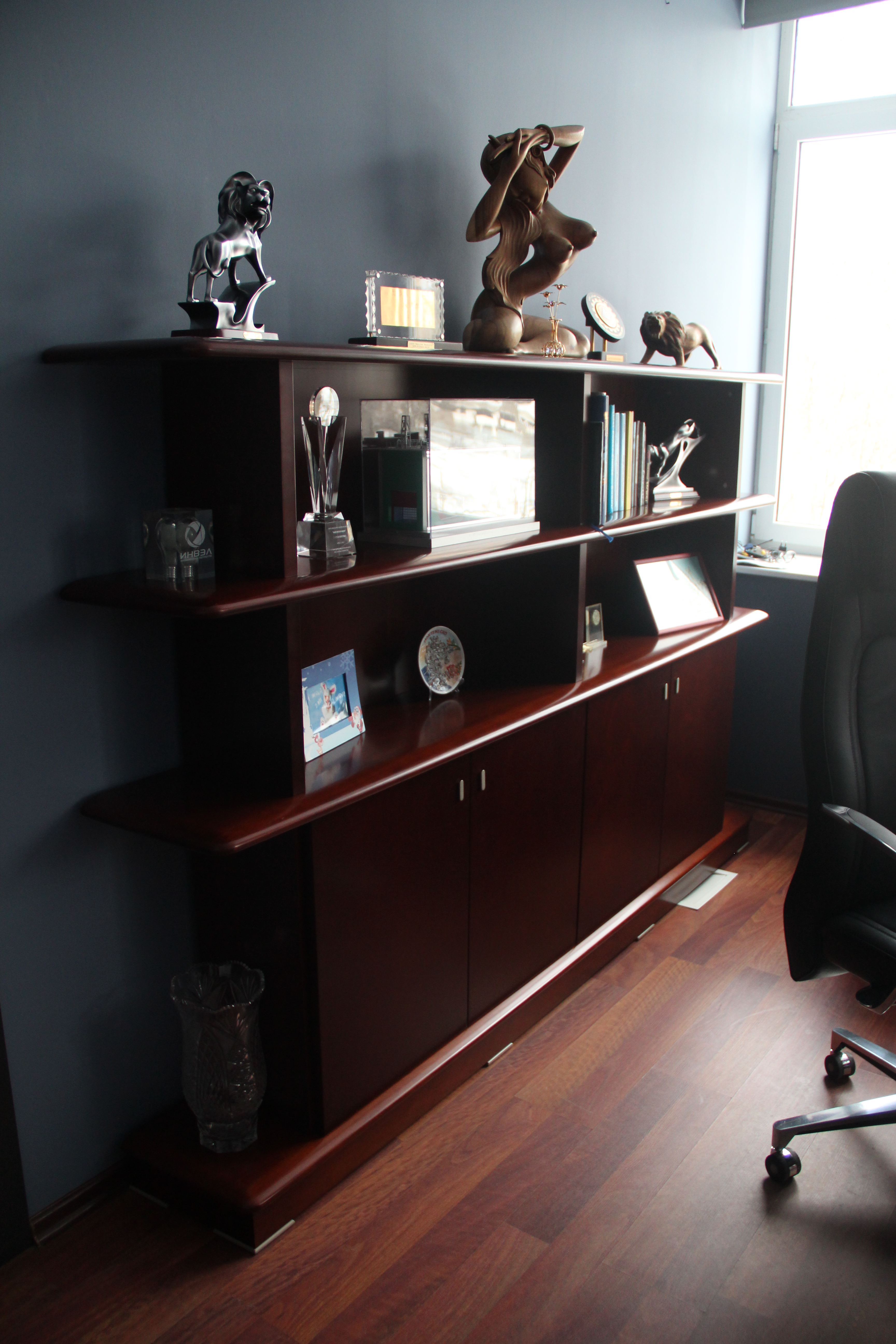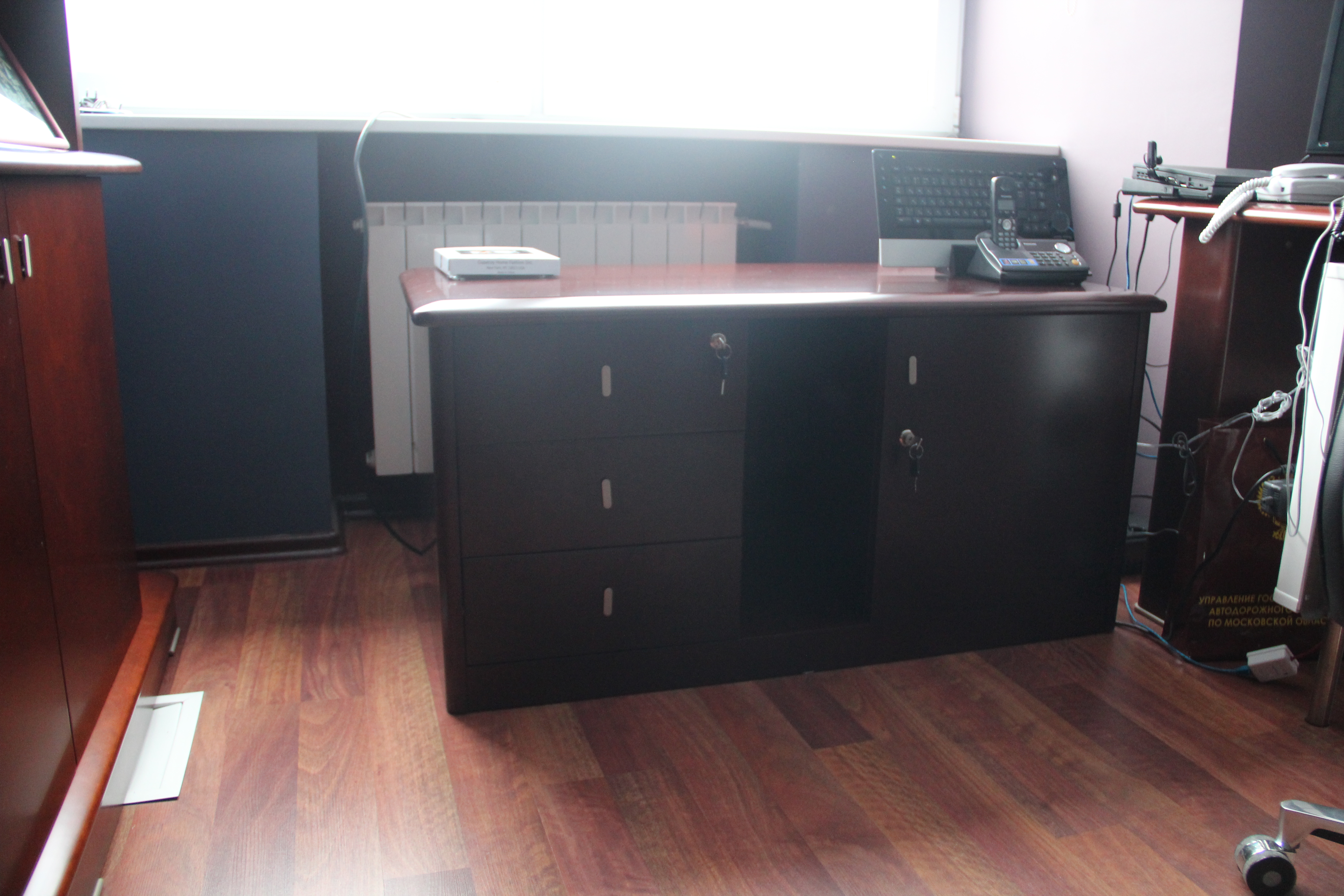 тумба приставная, стол переговоров 2300, стол журнальный, шкафы со стеклом, греденции